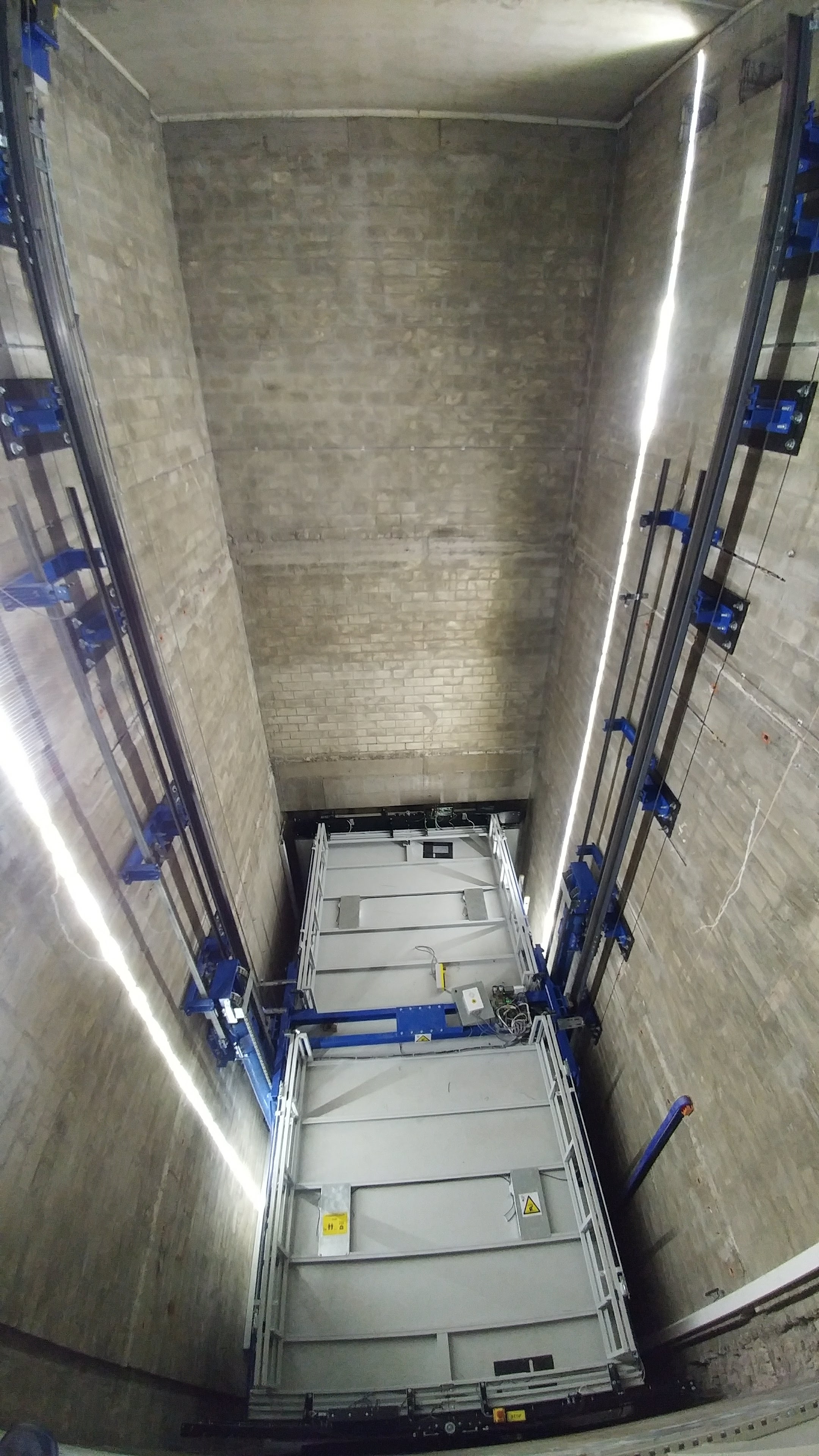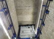Montage der Anlage in einem Schacht aus Mauerwerk (bestehend). Befestigung der Hauptschienen an der Wand mit Klebeanker HILTI