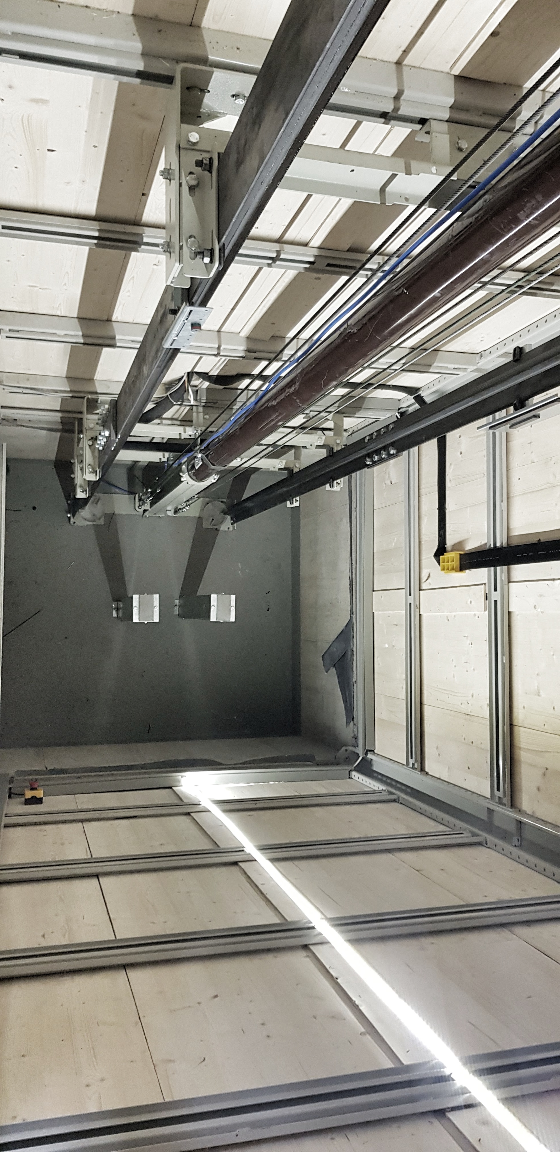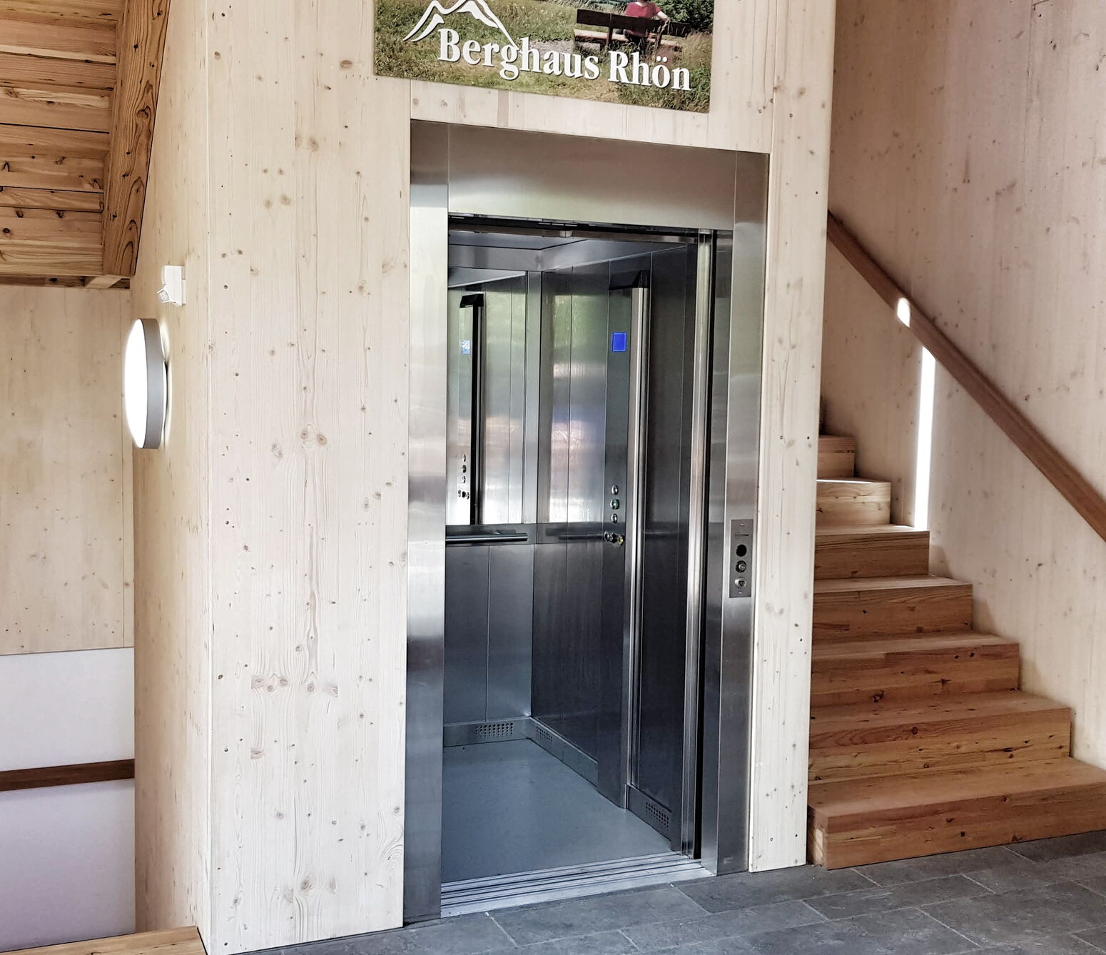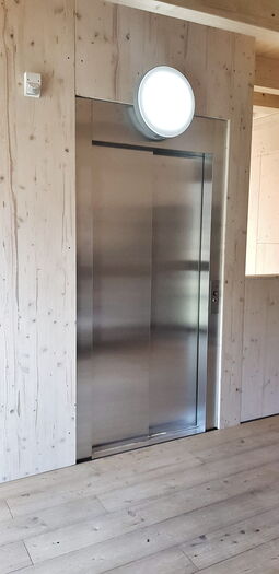 In einem Hostel in den Bergen Mitteldeutschlands haben wir vom Kunden einen Residlift Pro Aufzug in einem metallischen Schachtgerüst mit Holzverkleidung montiert.