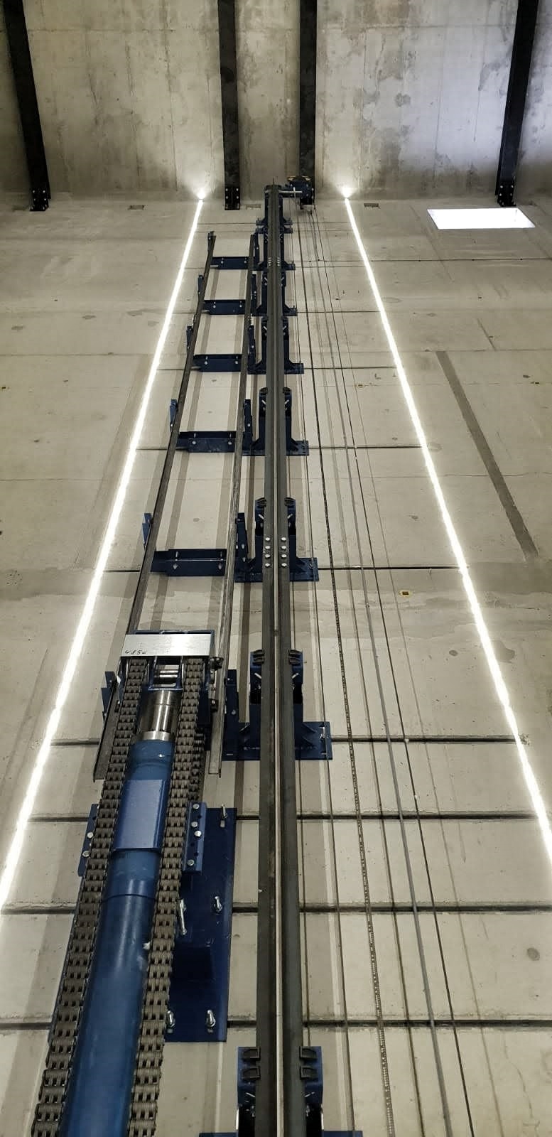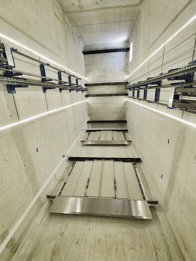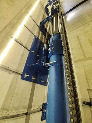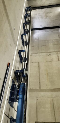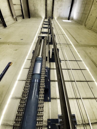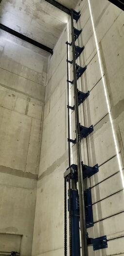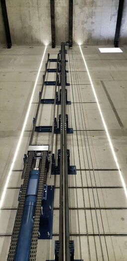 Die Montage der Hauptschienen und der Zylinder erfolgt mit Halfenschienen, die vorher bauseitig einbetoniert wurden.