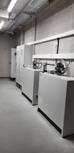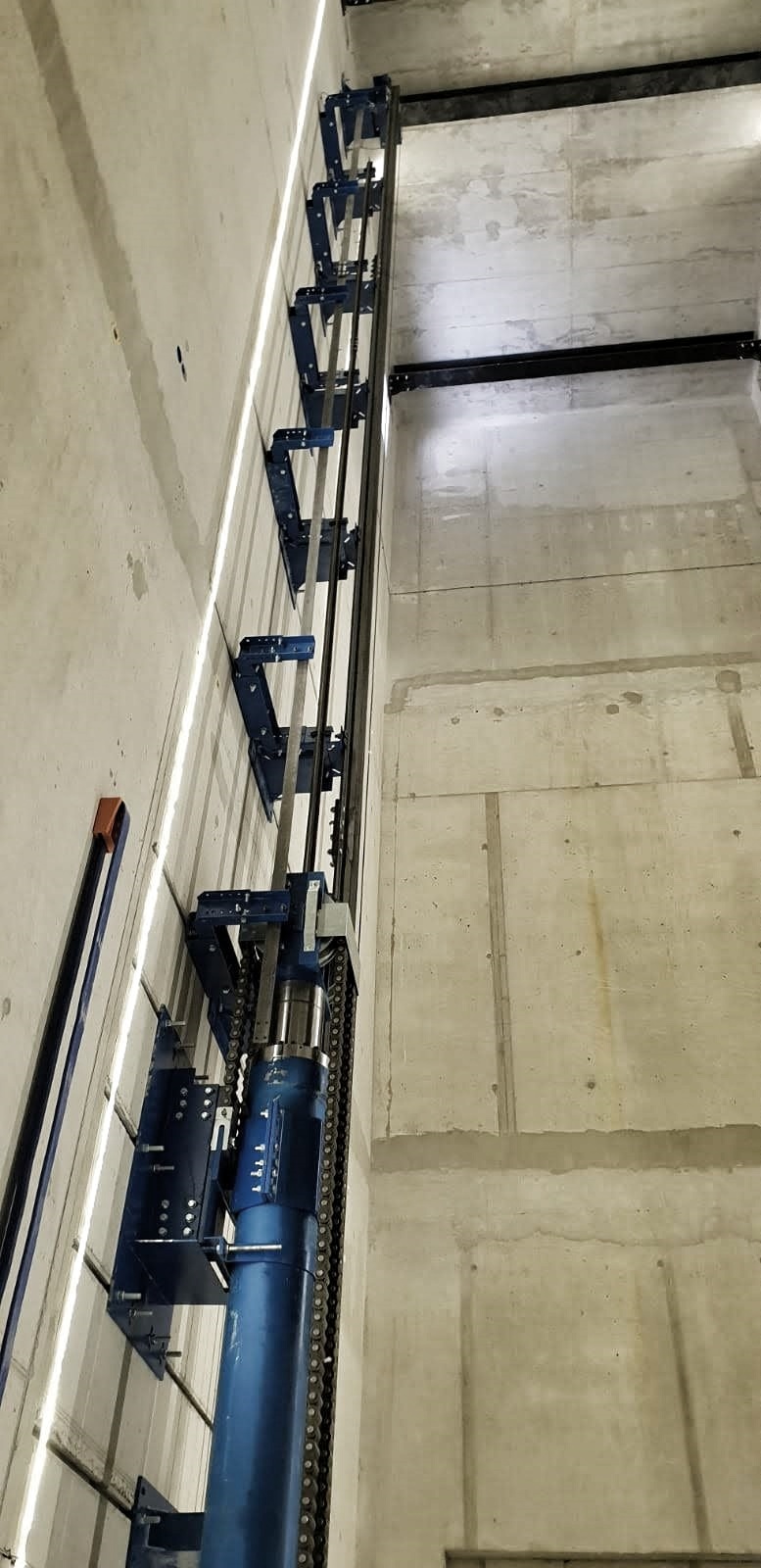 Es handelt sich um einen Autoaufzug 5500 Kg mit einer Geschwindigkeit von 0.4 m/s, mit 4 Haltestellen insgesamt und eine Förderhöhe von circa 14 Meter. Mit solchen Zahlen werden die Komponenten normalerweise auch verdoppelt: 2 Aggregate, 2 Steuerungen, 2 Softstarter, Zylinder in 2 Teile geliefert....