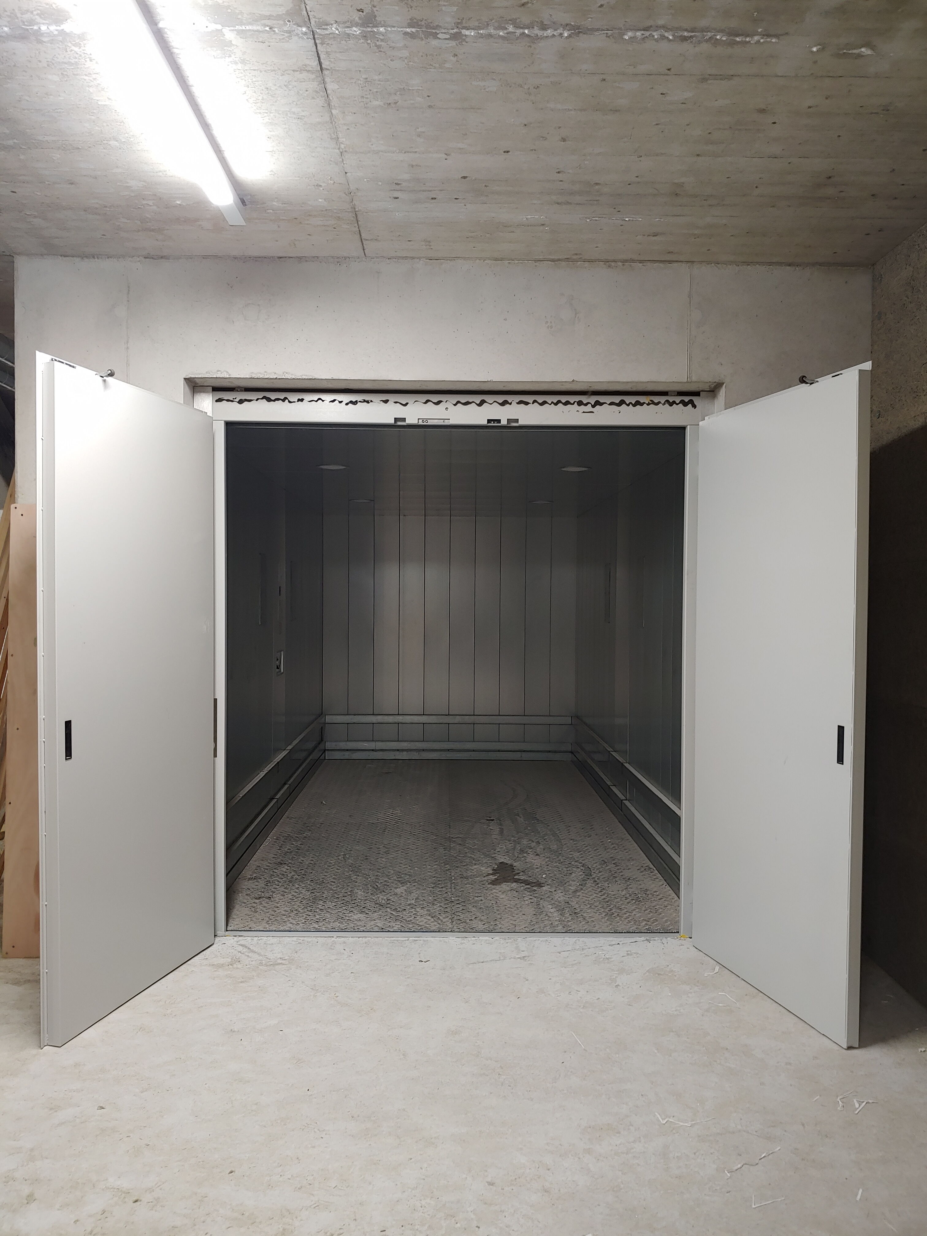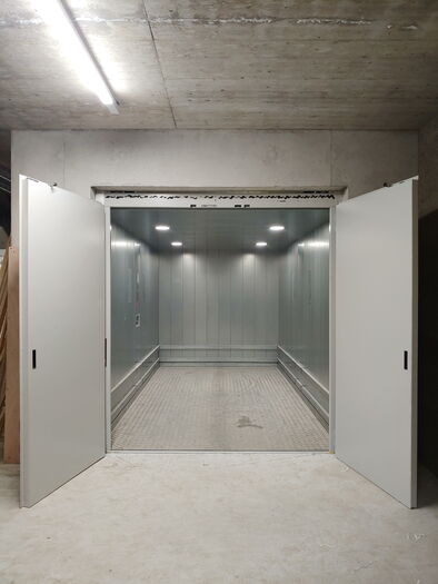 Warenlift vorbereitet für Transport mit Personenbegleitung
