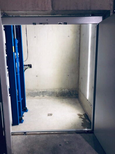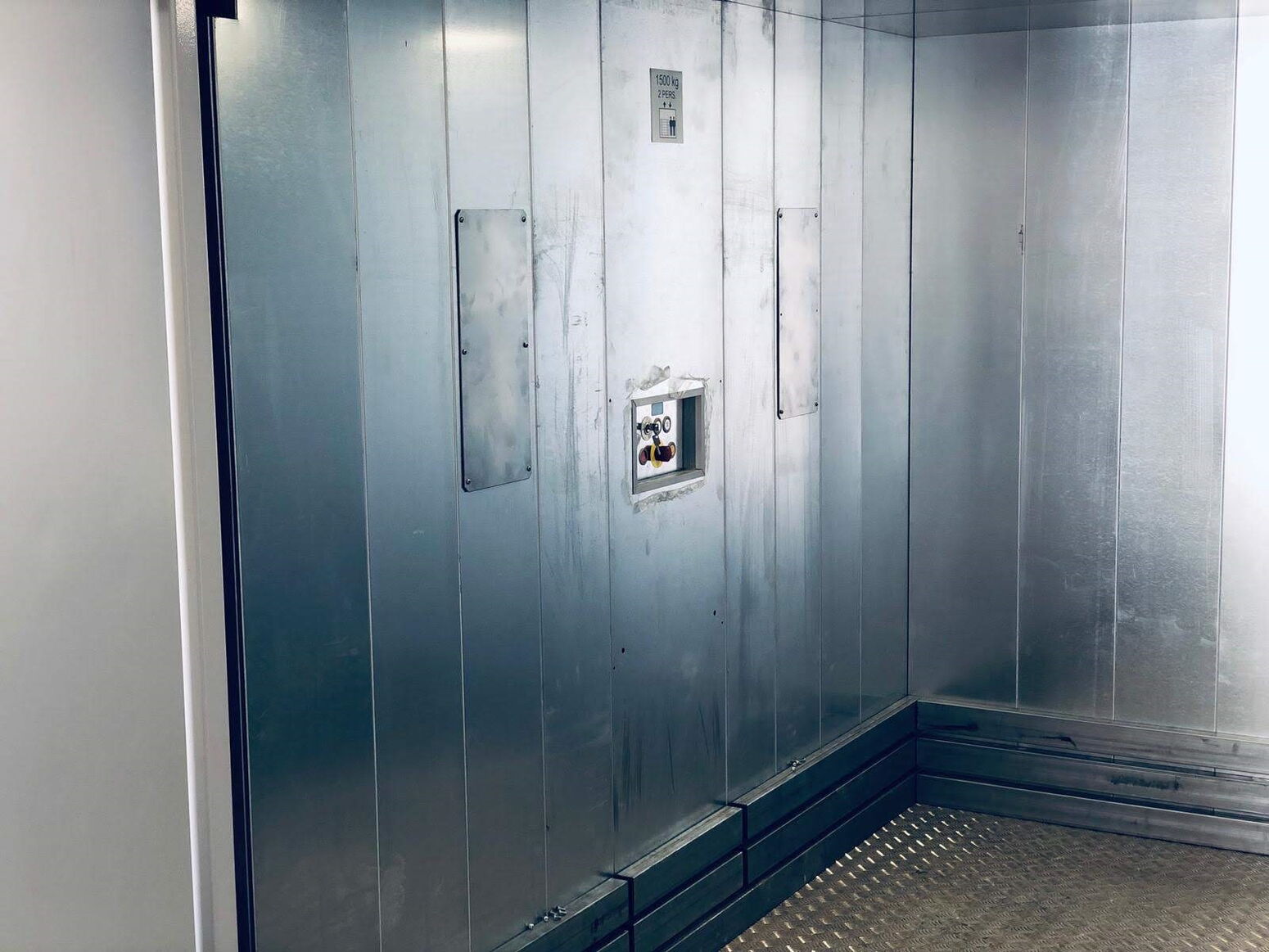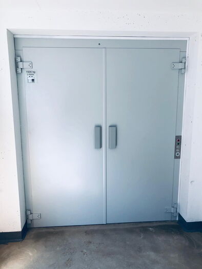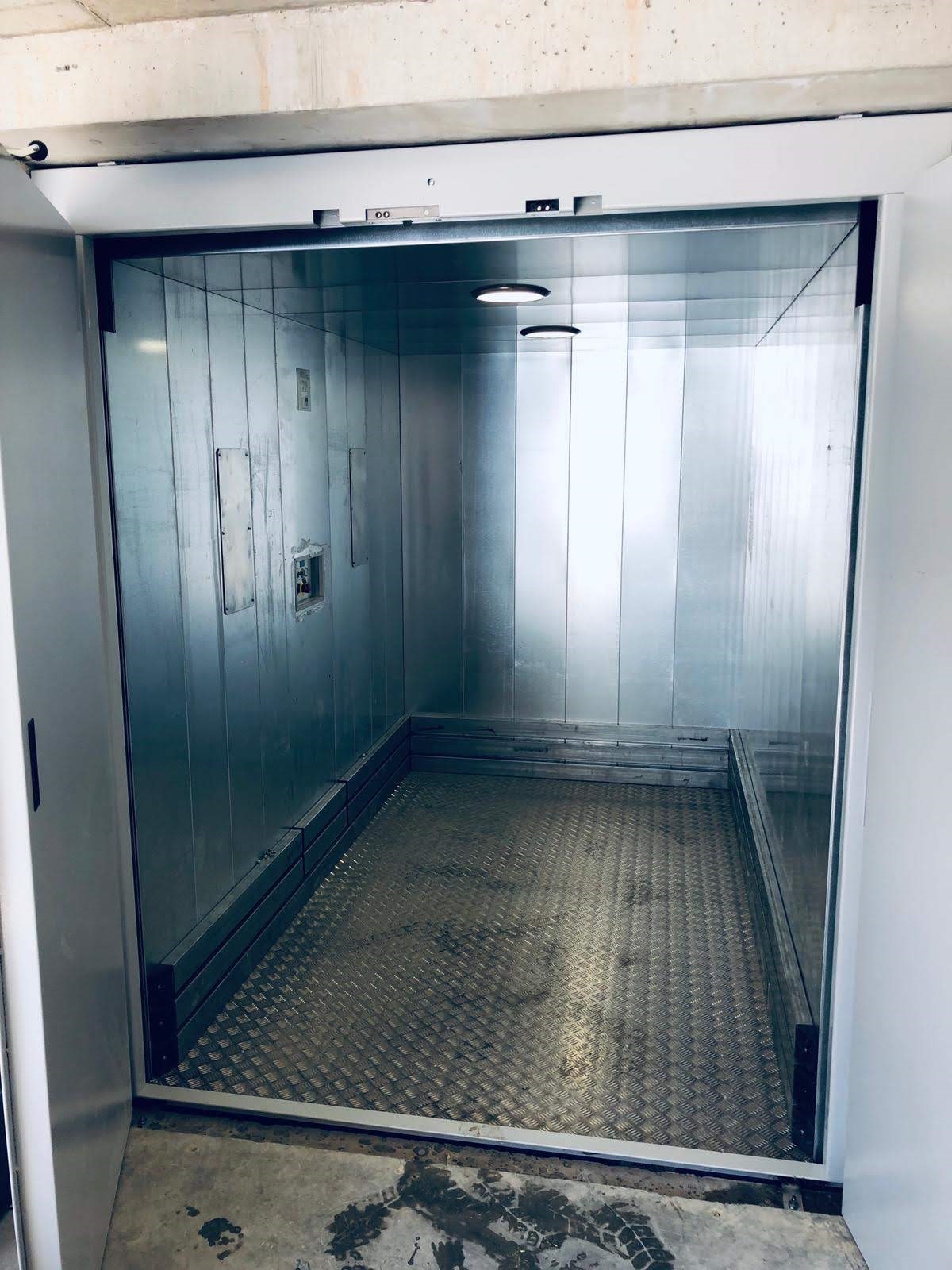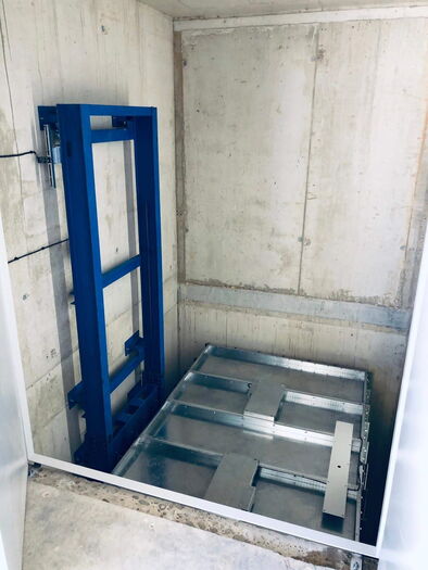 Warenlift vorbereitet für Transport mit Personenbegleitung