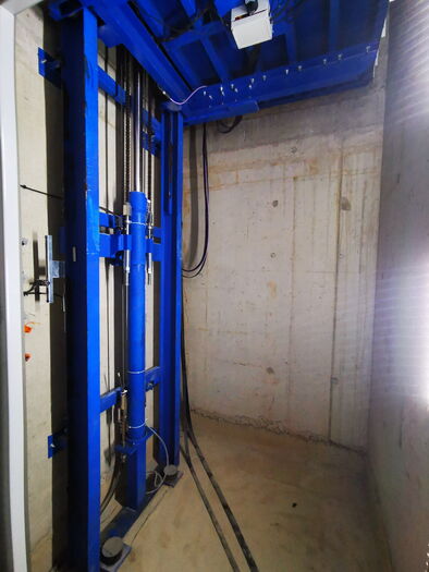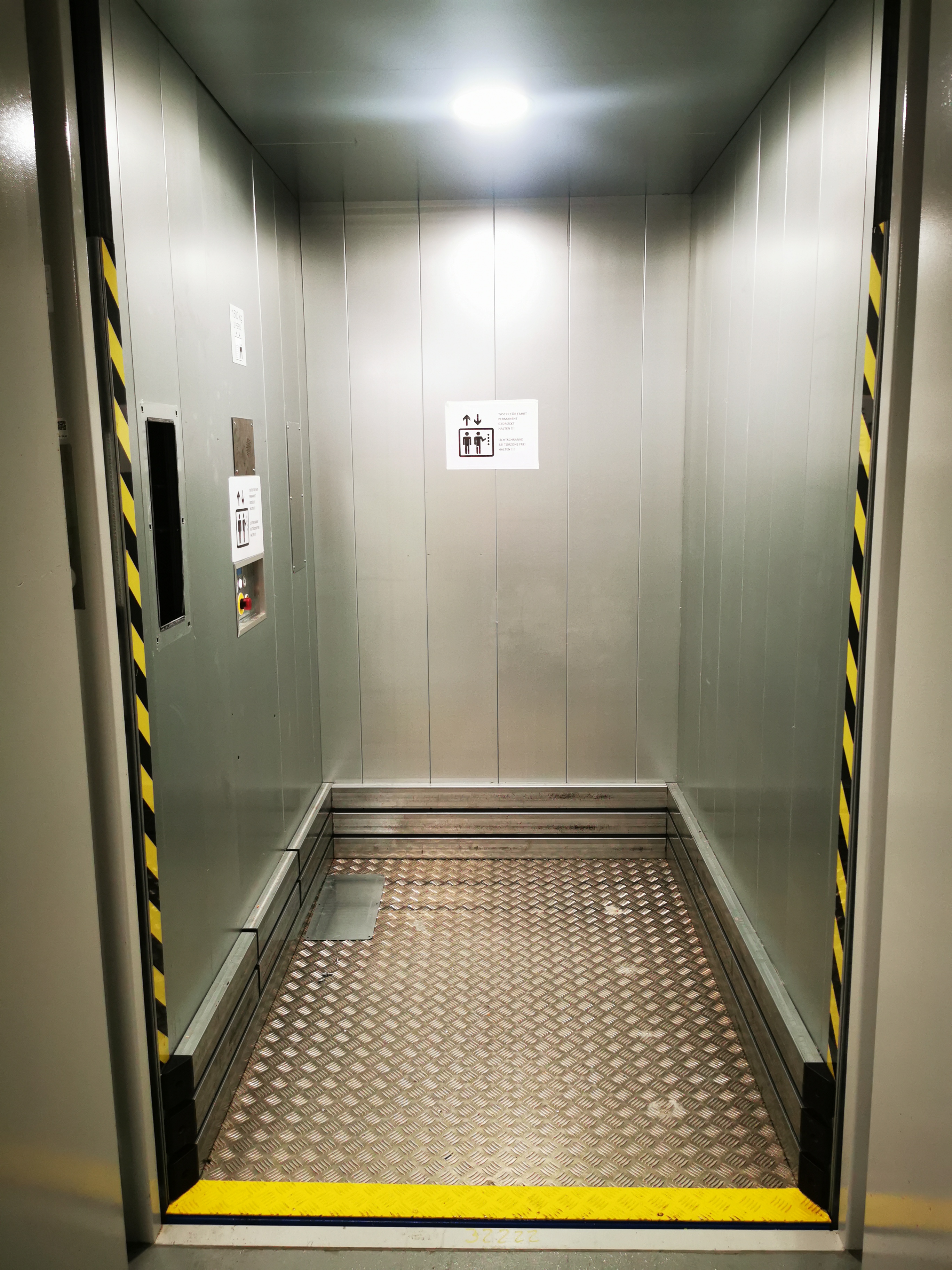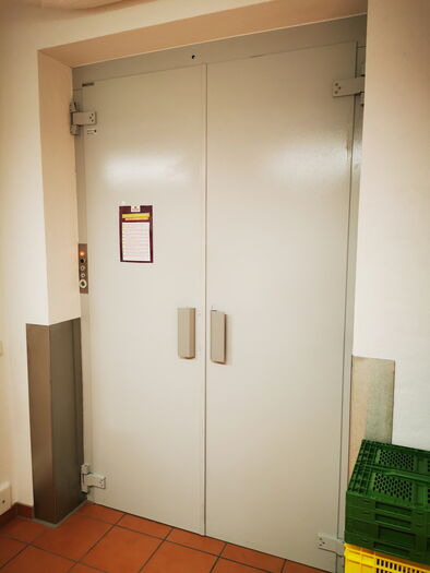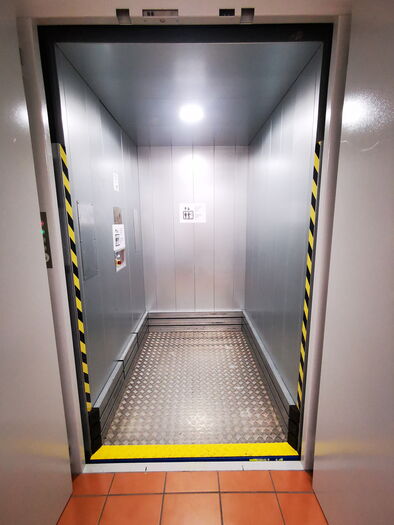 Warenlift vorbereitet für Transport mit Personenbegleitung