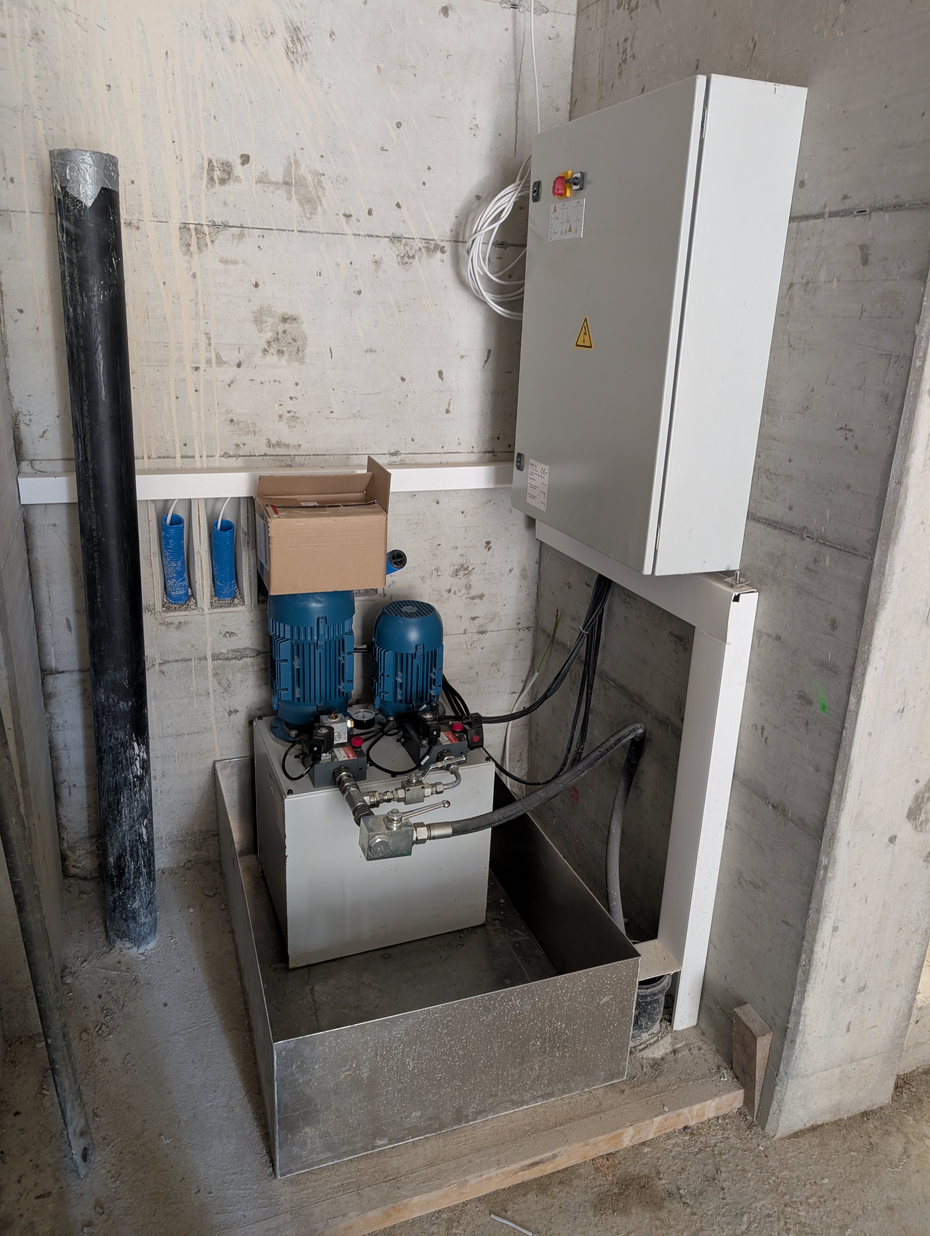 Der Aggregat und die Steuerung befinden sich in einem sepparaten Maschinenraum.
