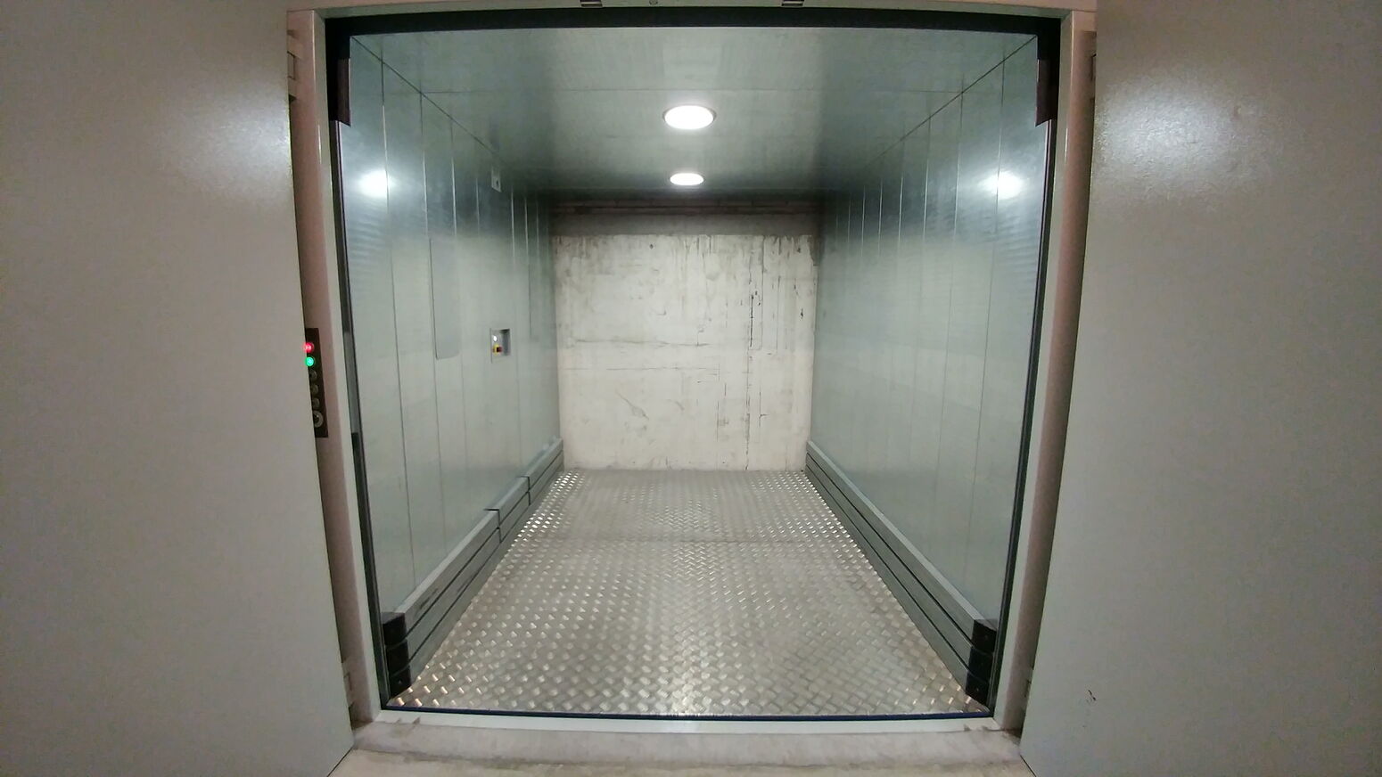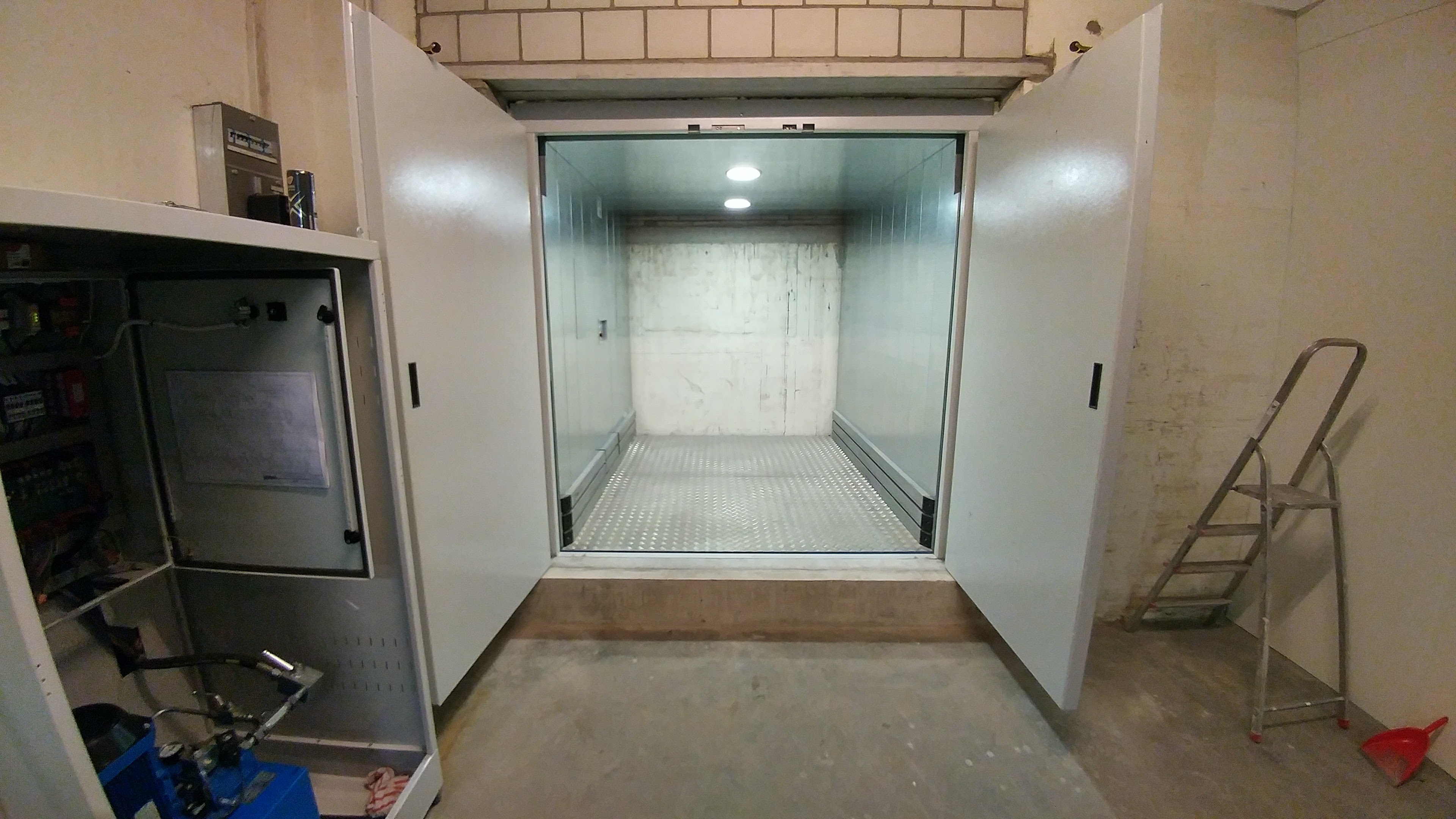 Warenlift vorbereitet für Transport mit Personenbegleitung