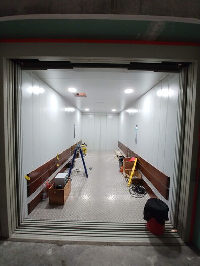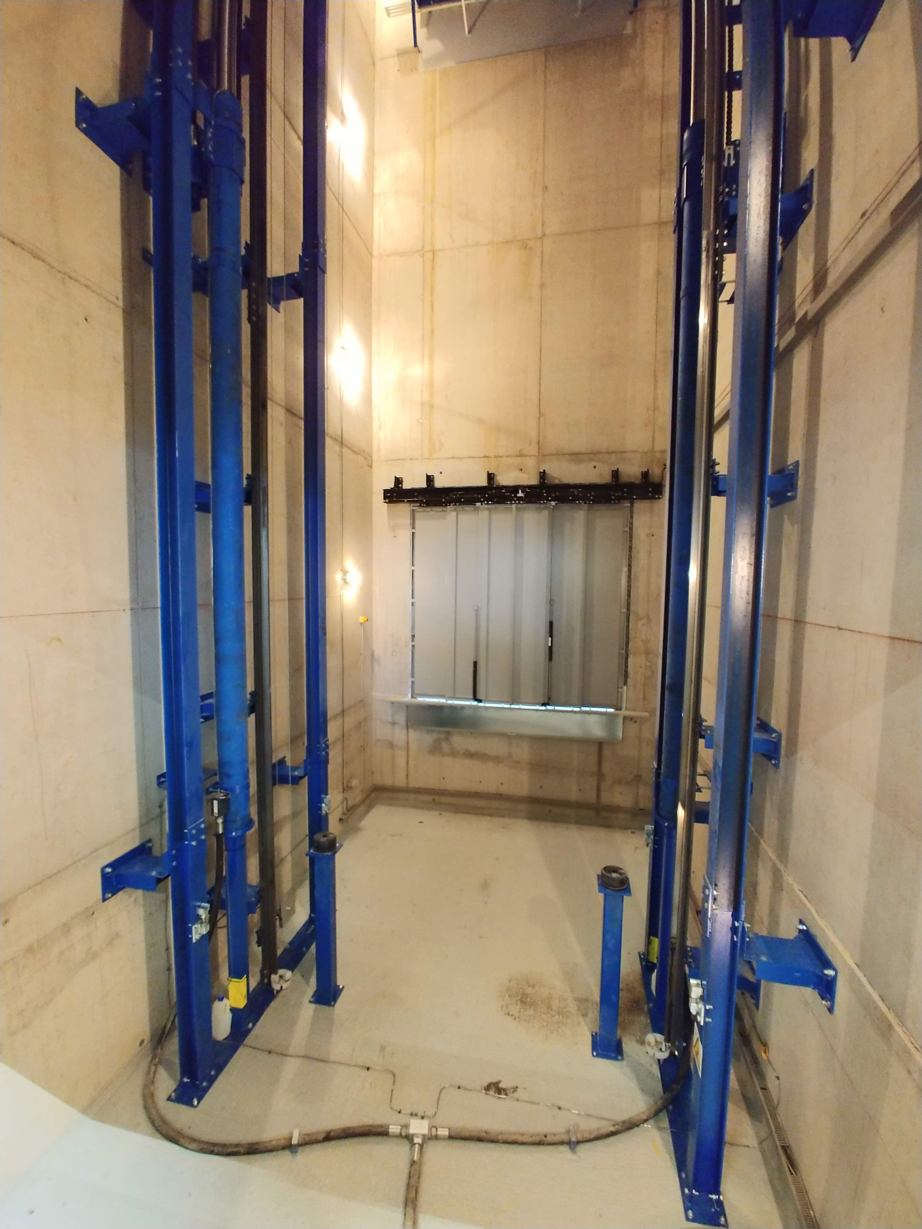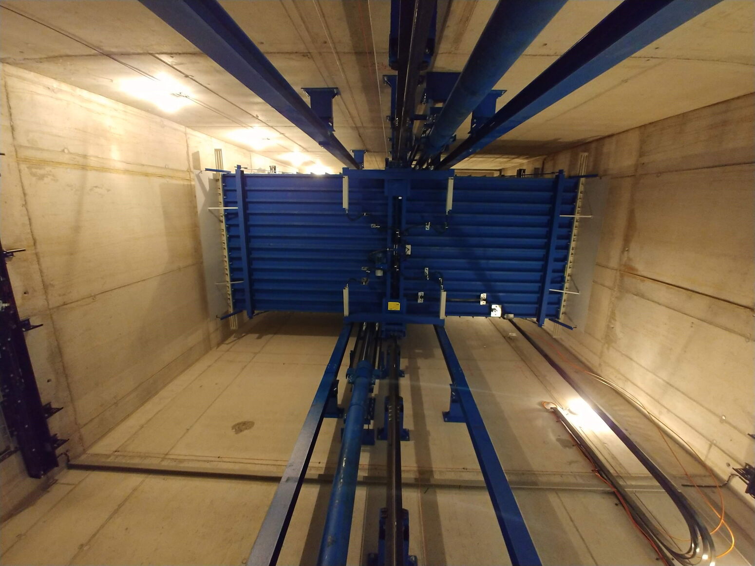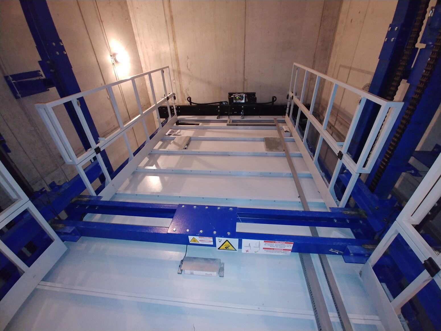 Einbau eines QHG Warenaufzuges in Schaanwals, Liechstenstein. Mit einer Nutzlast von 4500 kg Nutzlast und eine Kabinengrösse von 2.5 x 6 m beeindrückt diesen Aufzug für den Warentranspoort zwischen Produktion und Lager.