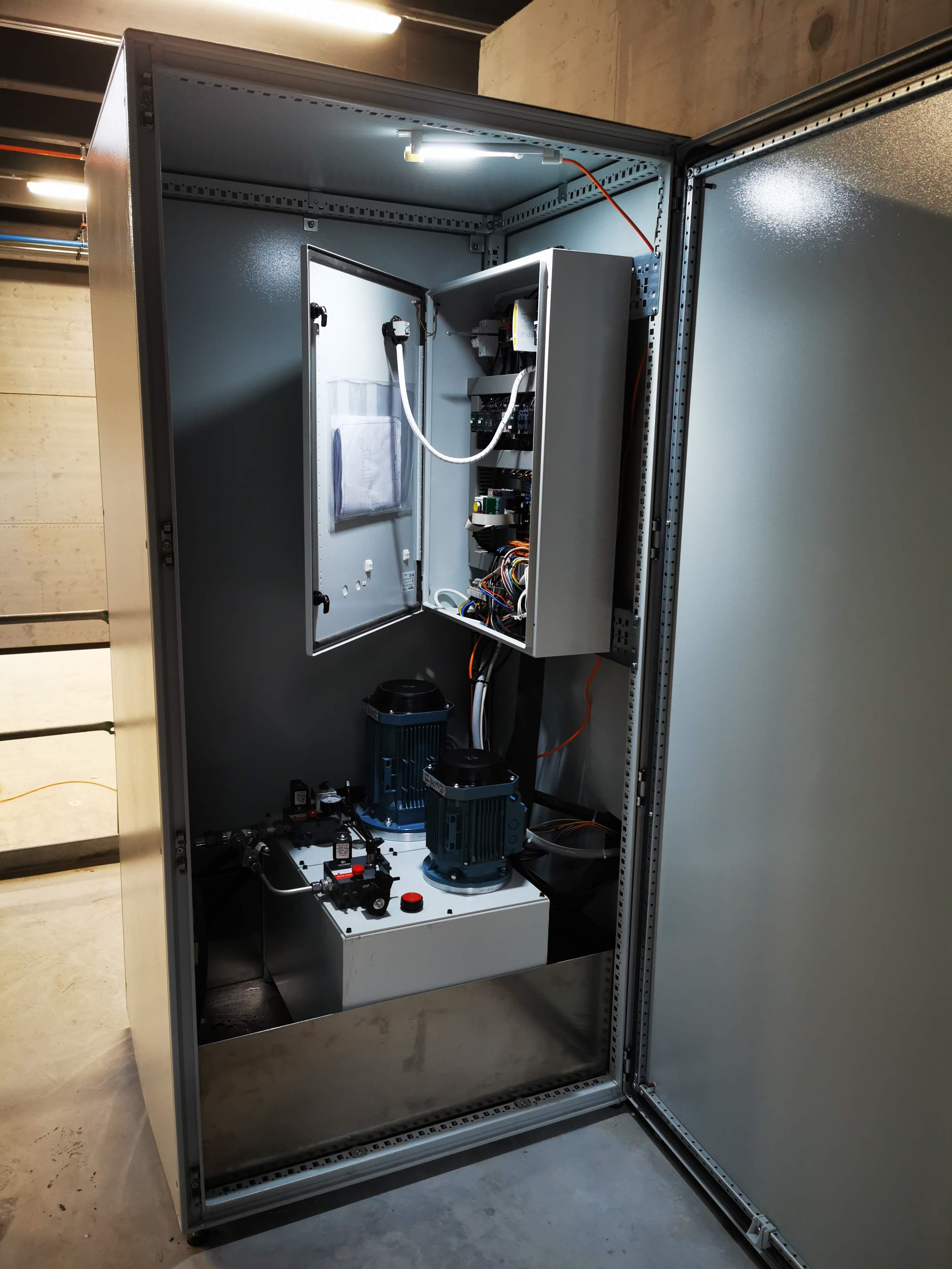 Wie gewohnt, wurde das Aggregat und die Steuerung in einem "all-in-one" Schrank eingebaut (MRL Lösung).