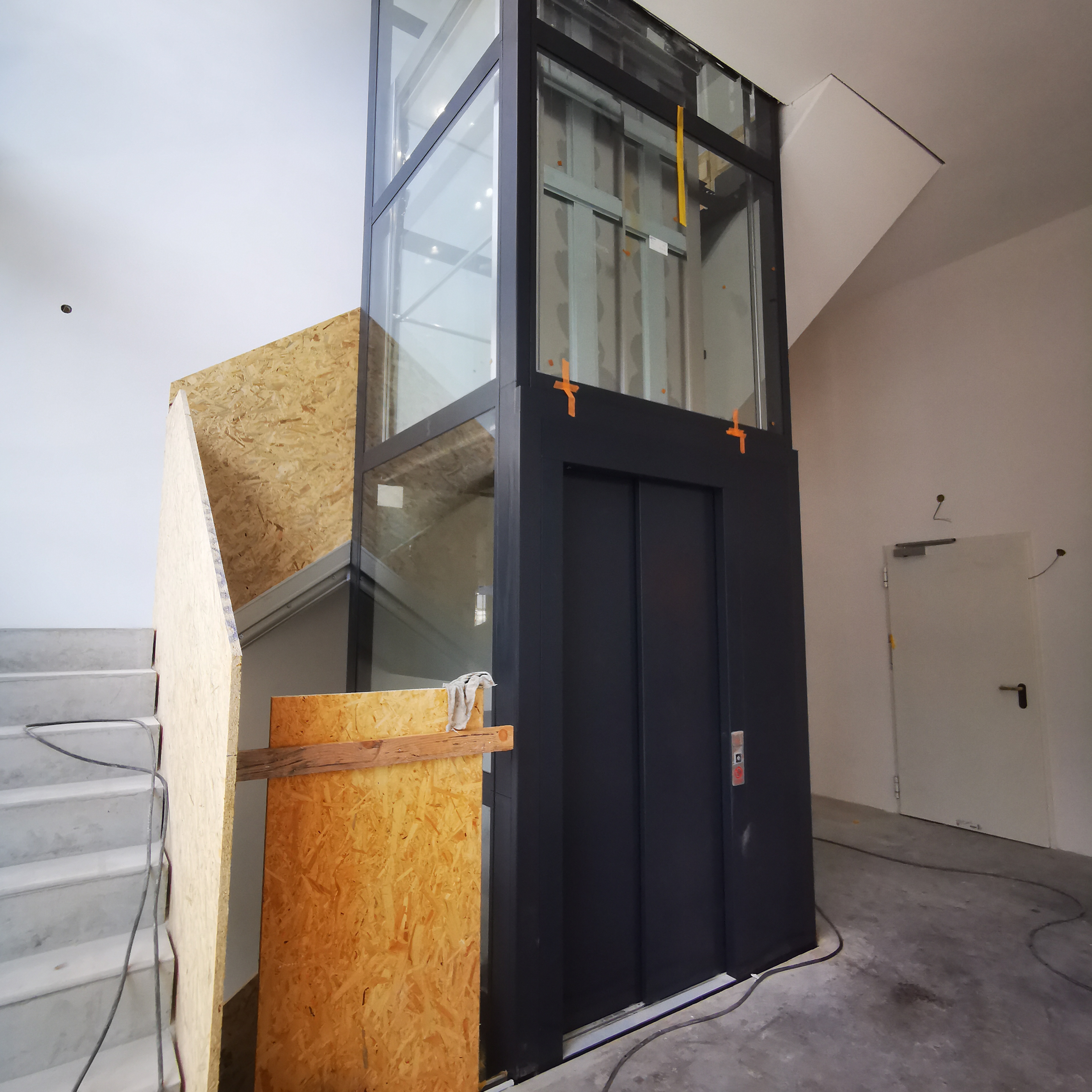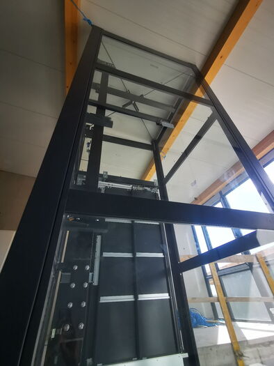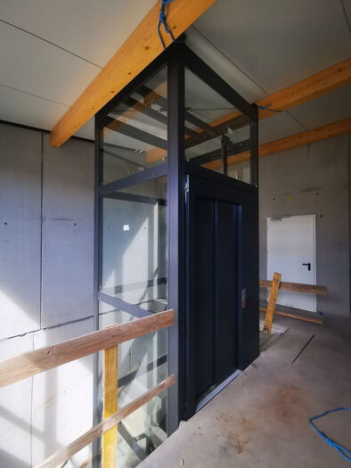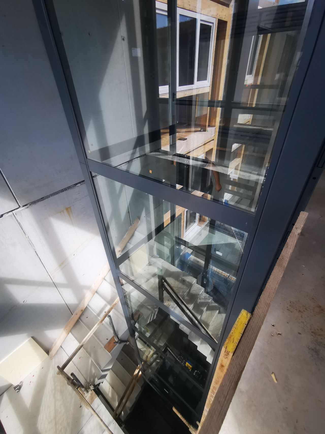 Der Kunde montierte die Konstruktion und den Aufzug innerhalb von zwei Wochen – eine Marke, die man sich für die Vorteile einer selbsttragenden Konstruktion bei solchen Projekten merken sollte. Jetzt müssen wir nur noch die Tür und die Innenverkleidung fertigstellen.